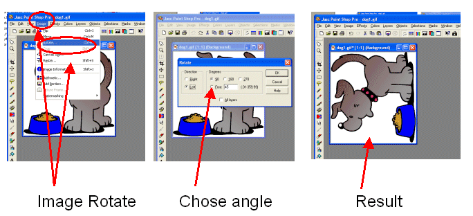 Images can be rotated by an angle either clockwise or anti-clockwise.